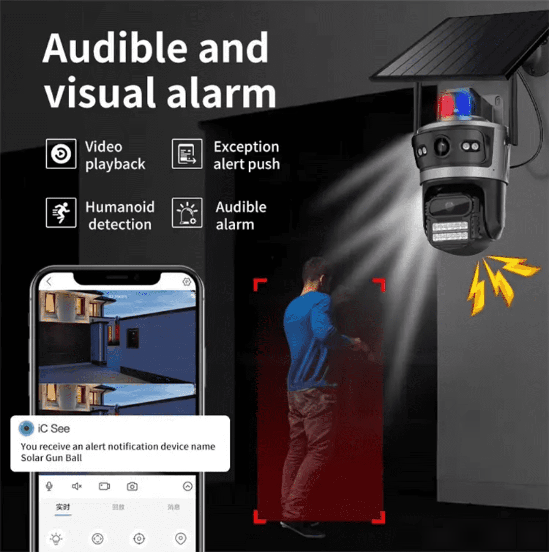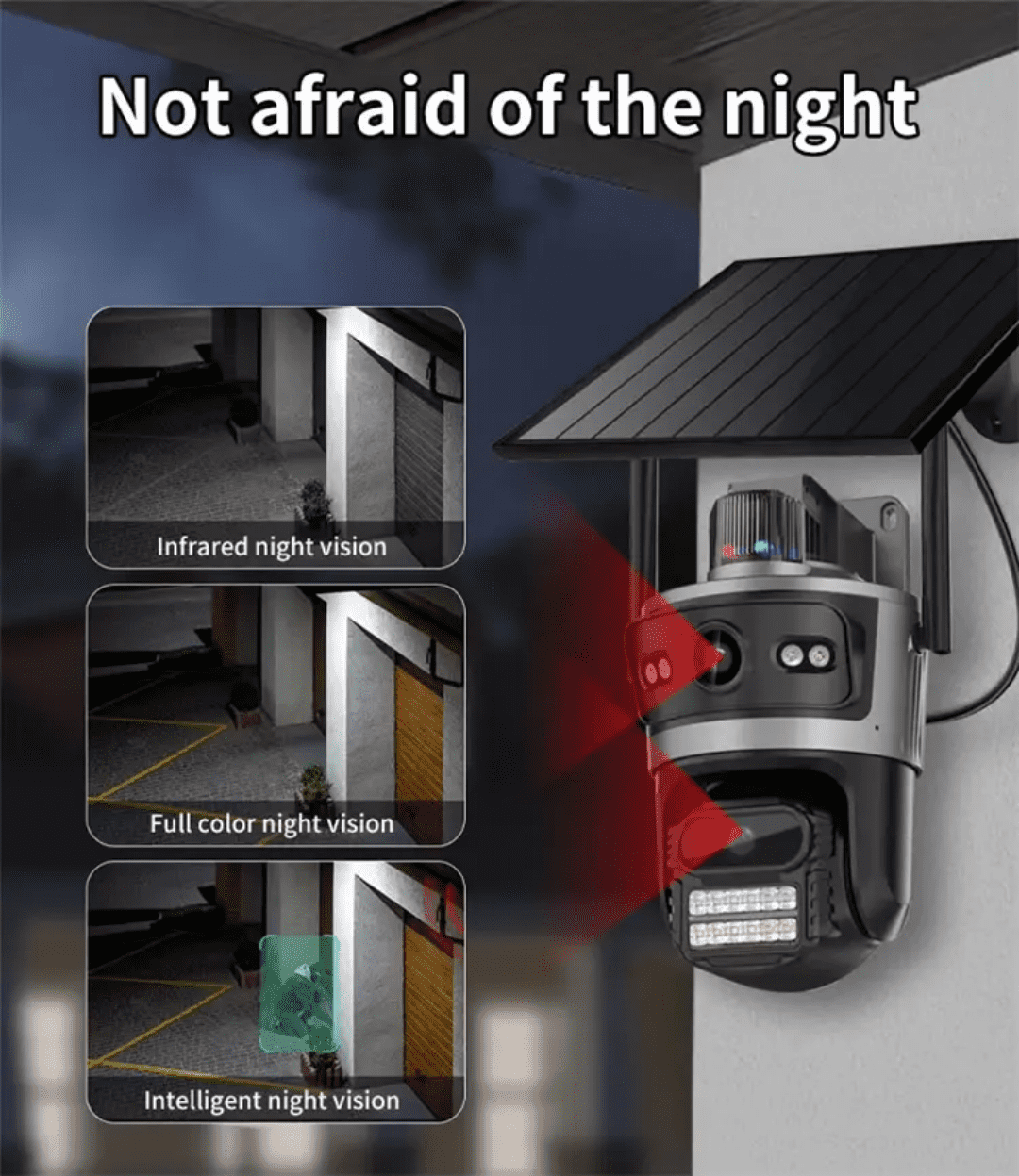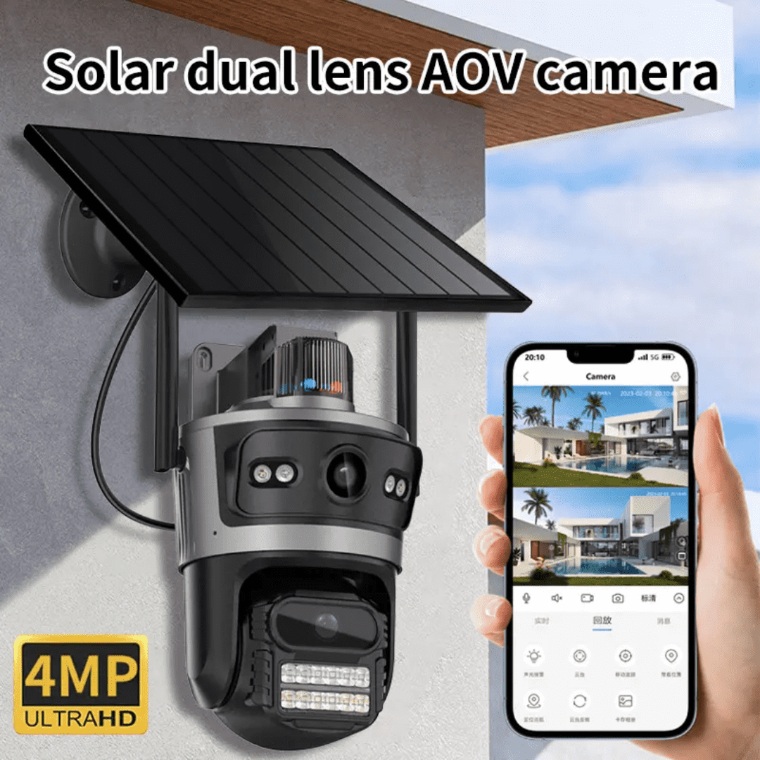 Features :- Dual lens, AOV mode, 7.6W solar panel, humanoid detection