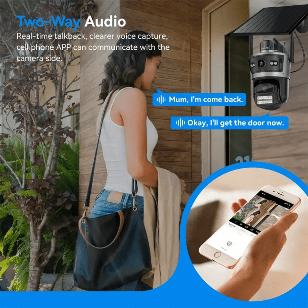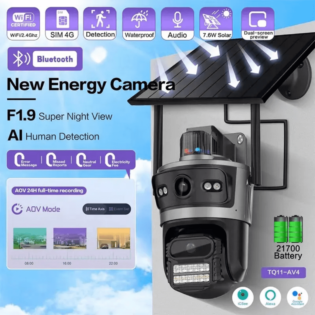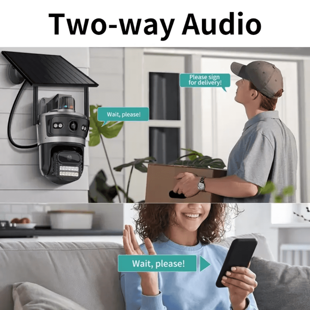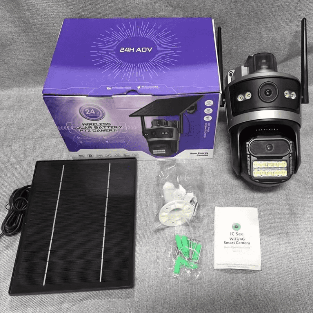 Features :- Dual lens, AOV mode, 7.6W solar panel, humanoid detection